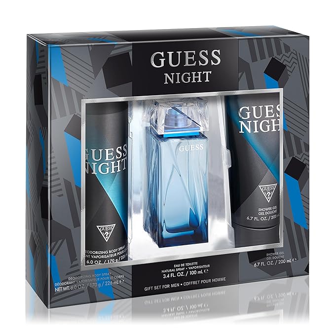 GUESS Night Men Eau de Toilette 3 Piece Gift Set - Cologne Spray 3.4 Fl. Oz., Deodorizing Body Spray 6.0 Oz., & Shower Gel 6.7 Fl. Oz.