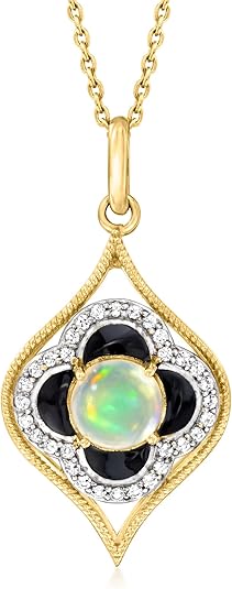 Ross-Simons Ethiopian Opal and .16 ct. t.w. Diamond Pendant Necklace With Black Enamel in 18kt Gold Over Sterling. 18 inches