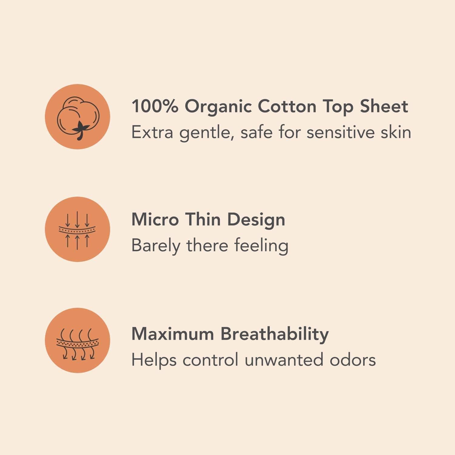 • LIGHT & ABSORBENT - Top sheet designed with Airhole Technology to keep you feeling dry all day.