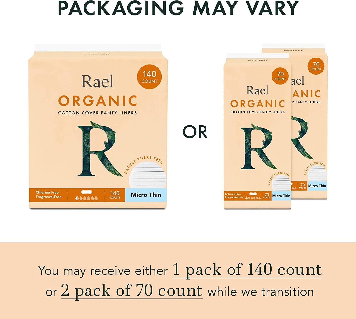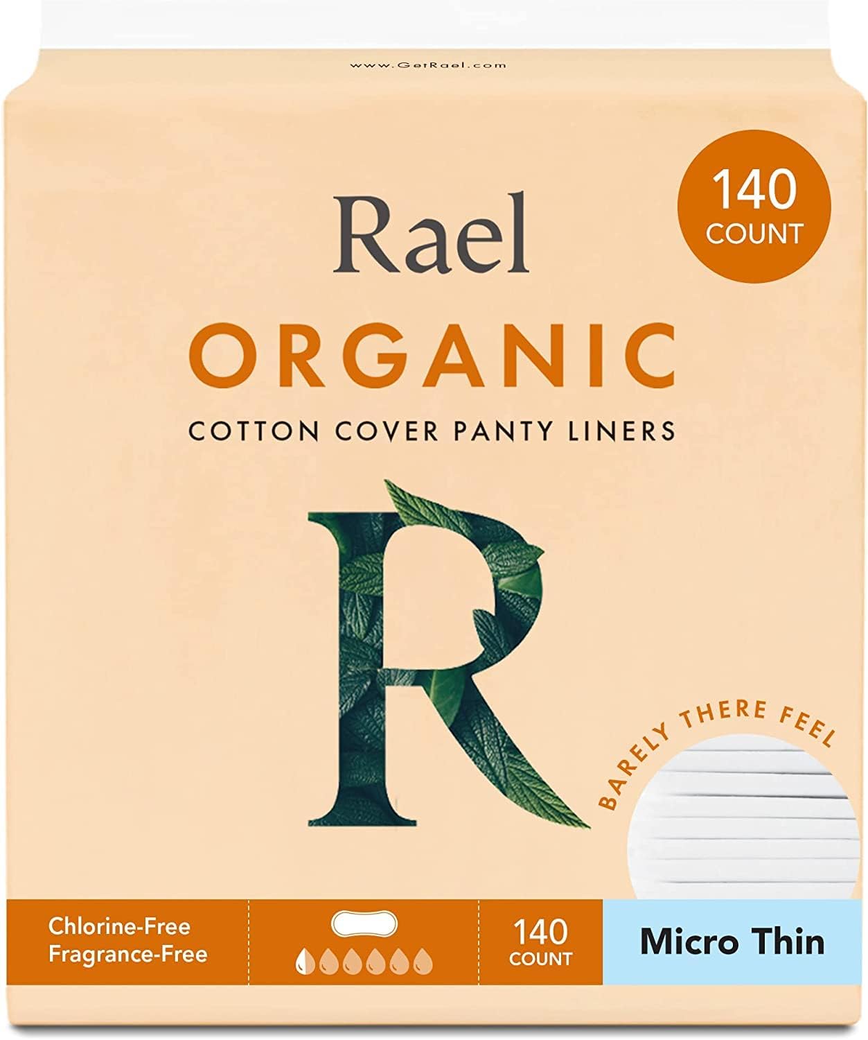 Rael Panty Liners for Women, Organic Cotton Cover - Thin Pantiliners, Light Absorbency, Unscented, Chlorine Free (Micro Thin, 140 Count)
