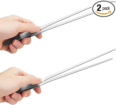 2PCS Long Aquarium Tweezers - 10.6" Straight and Curved Tweezers, Stainless Steel Reptile Feeding tongs, Terrarium Aquascape Tools Feeder for Lizards, Bearded Dragon Snake Tank Accessories