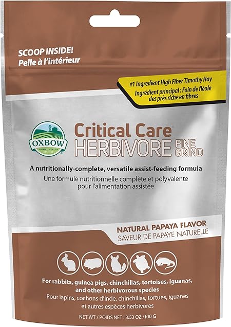 Oxbow Animal Health Critical Care, Herbivore, Fine Grind Papaya Flavor, 100 Gram Bag