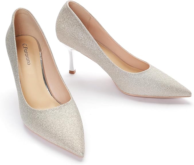 C.Paravano Women's Pump | Kitten Heel Daily Pumps | Closed Toe Low Heel | Comfortable Low Stiletto Heel Pumps