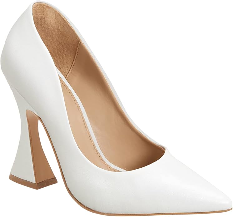 Women's Pointed Toe High Heel Pumps Closed Toe Flared Heel Slip-On Party Wedding Office Dress Shoes