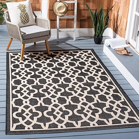 SAFAVIEH Courtyard Collection 2' x 3'7" Black/Beige CY6071 Indoor/ Outdoor Waterproof Easy-Cleaning Patio Backyard Mudroom Accent-Rug