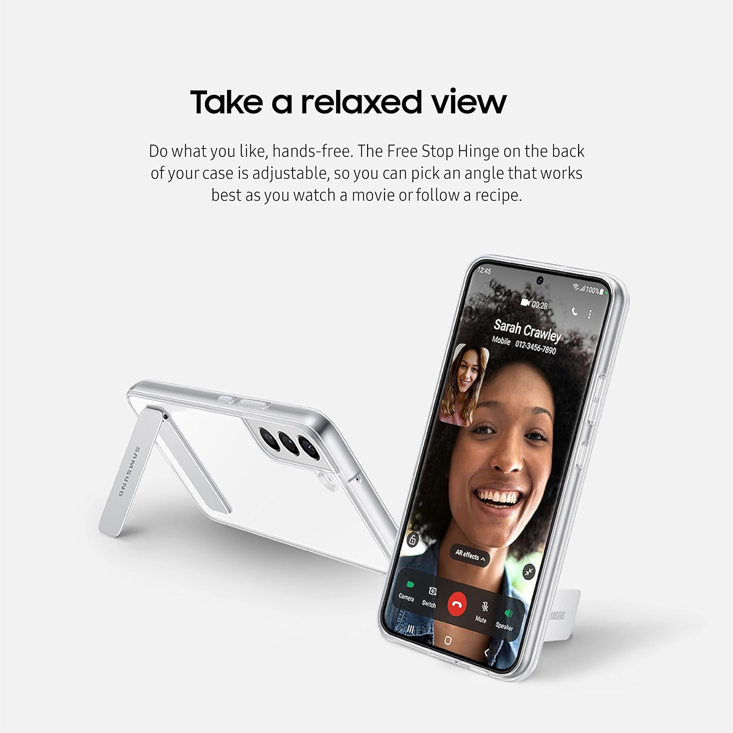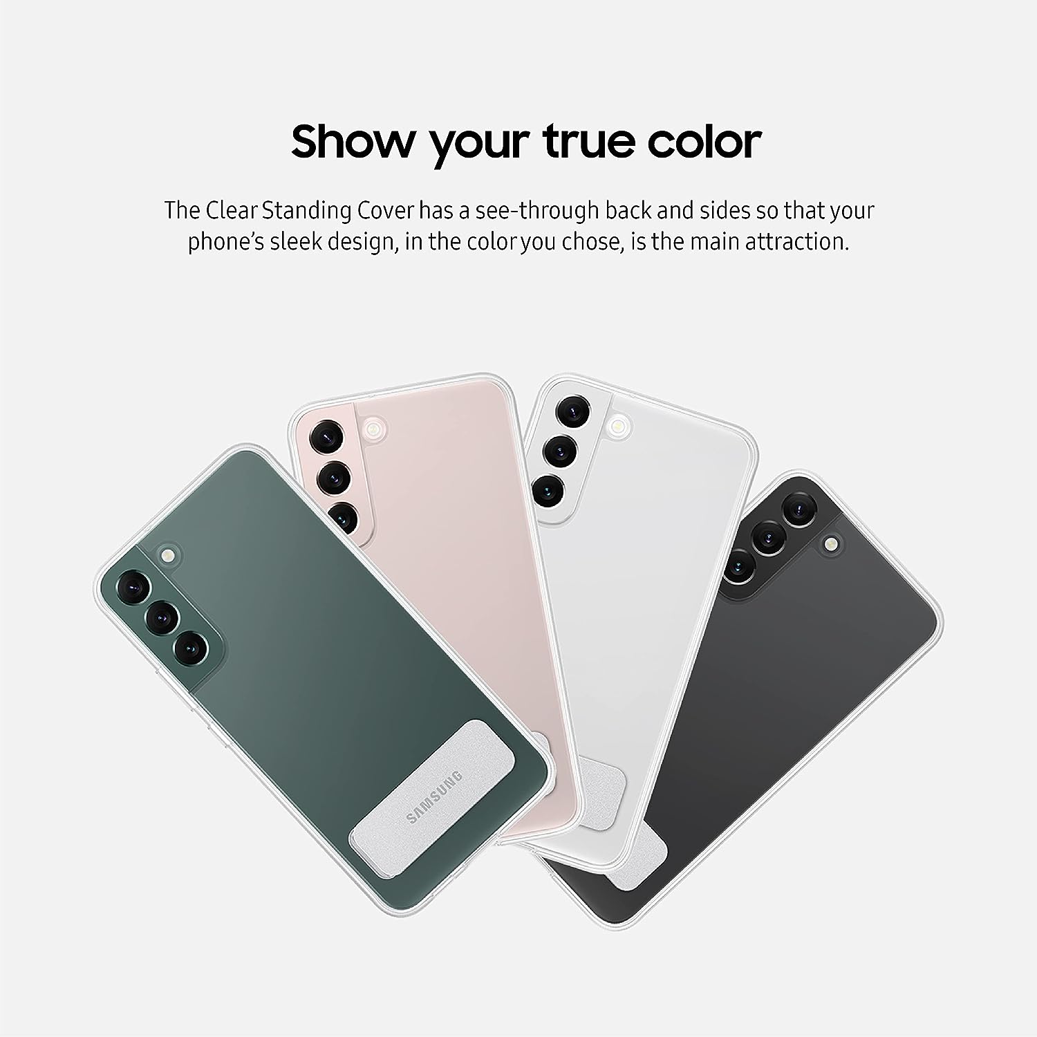 Samsung Electronics Galaxy S22+ Clear Standing Cover, Protective Phone Case, Corner TPU Bumpers, PC Back Protection, Adjustable Viewing Angle, US Version, Transparent, (EF-JS906CTEGUS)