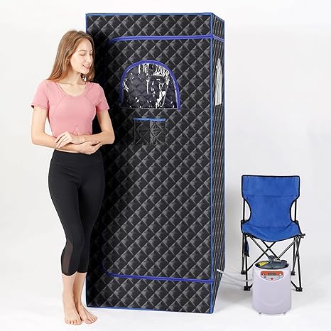 Sauna, Portable Sauna Box, Single Personol Steam Sauna for Home Spa, Large Space Sauna Tent Full Body for Home with 3L 1100w Steamer, Chair, Foot Massager, Remote Control Included (Black)