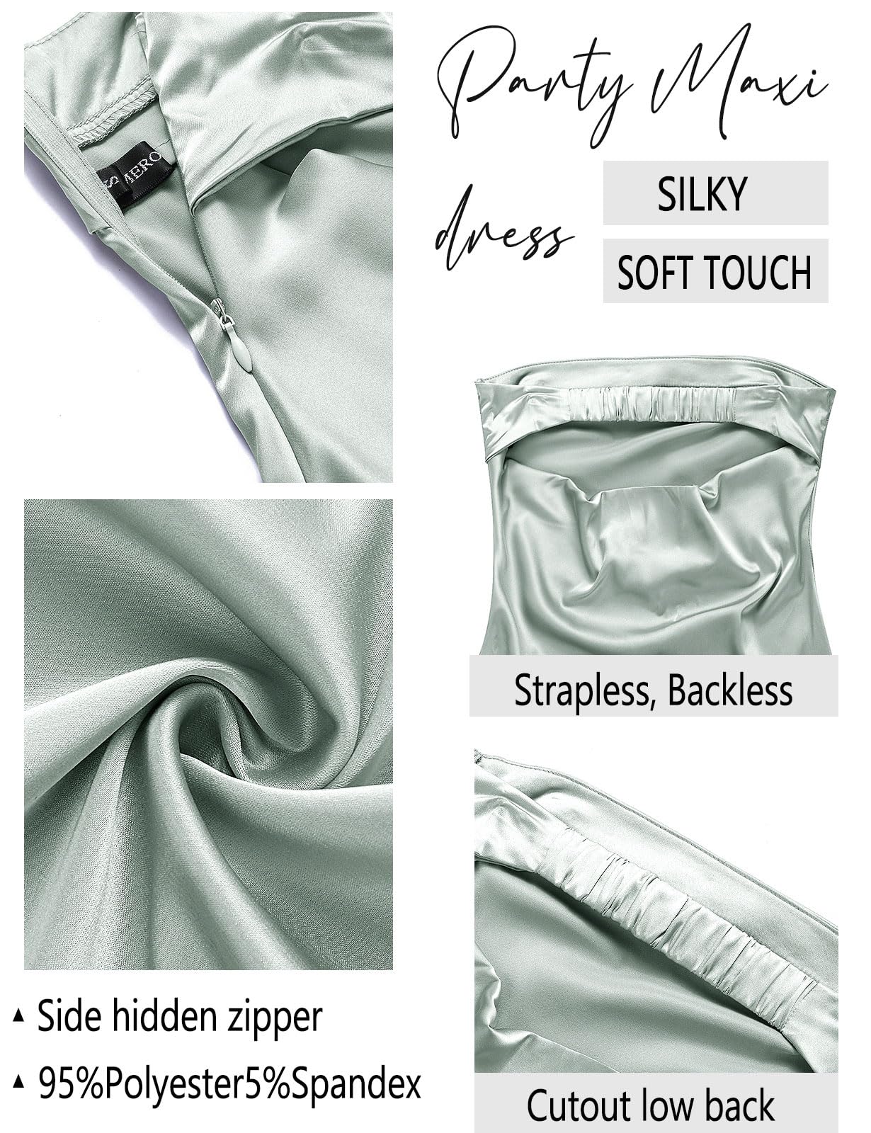 MEROKEETY Women Strapless Satin Tube Bodycon Dress Backless Cutout Cocktail Party Maxi Dress Sage Small
