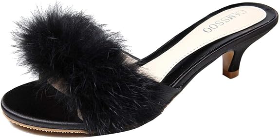 CAMSSOO Women's Satin Kitten Heels Mules Sandals Slip On Bowknot Open Toe Backless Dress Sexy Low Heeled Slipper Slides_æ_