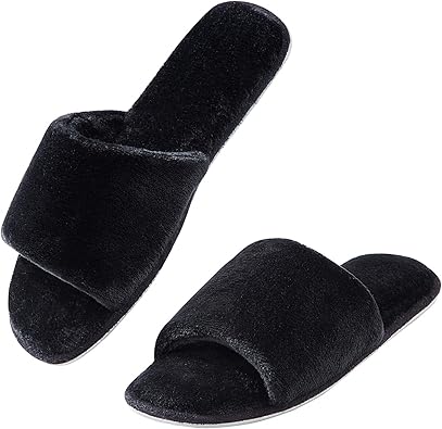 DL Open Toe Slippers for women Indoor, Cozy Memory Foam Womens House Slippers Summer Slip On, Comfy Soft Flannel Womens Bedroom Slippers Slide Breathable Size 5-6 7-8 9-10