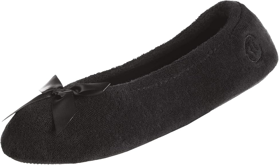 Isotoner Women_æ_s Classic Terry Ballerina Slipper: Soft, Breathable, Terry Lined, Satin Bow, Secure Fit