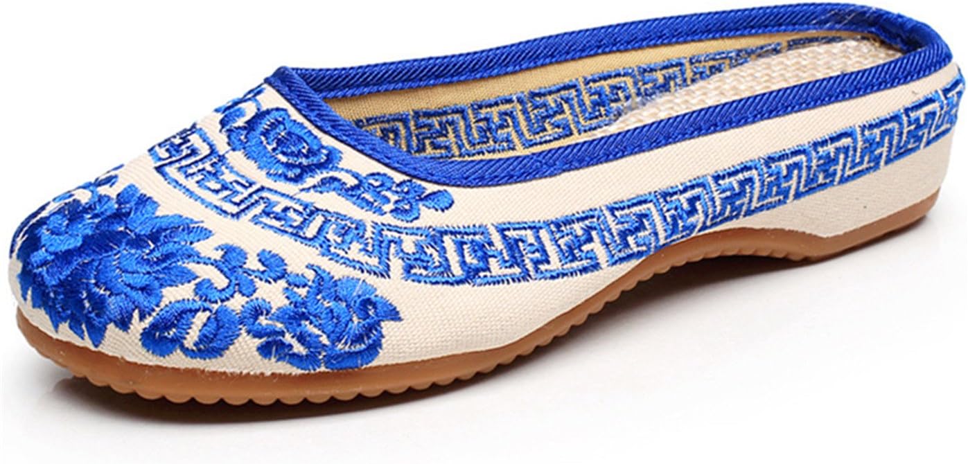 Qhome Womens Chinese Style Embroidery Round Toe Casual Walking Household Canvas Slippers