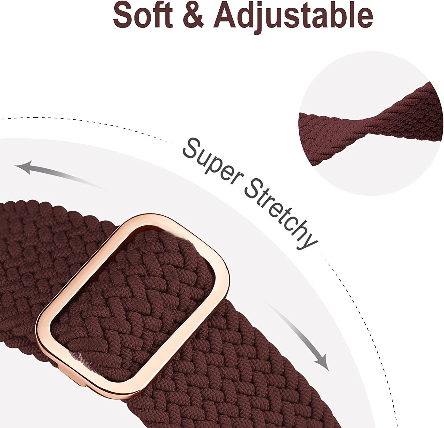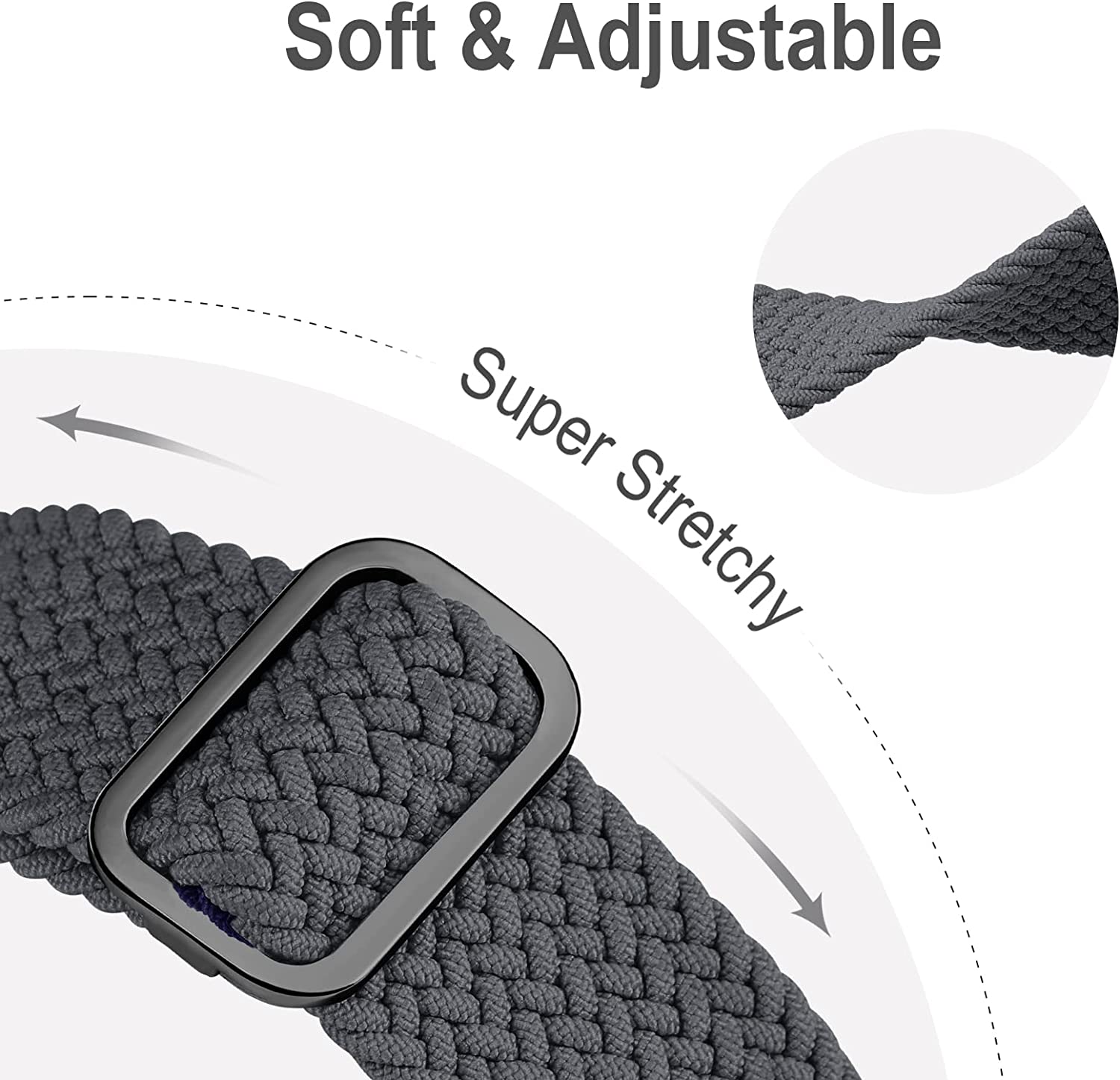 • Material: Made of premium nylon material, the elastic Apple Watch straps are skin-friendly without any irritation, soft, stretchable, durable, lightweight and washable, super comfy for working out & daily use.