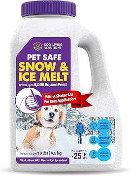 Pet Safe Snow & Ice Melt | Eco Living Solutions | Calcium Chloride | Works Under -25 «�F | Safe for Concrete Driveway and Roof | Better Than Rock Salt | Safe for Kids and Pets (10, Pounds)