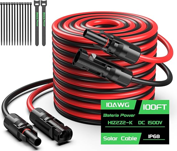 100FT 10AWG Solar Panel Extension Cable, Bateria Power 6mm«_ Solar Extension Cable Wire with Female & Male Waterproof Connectors for RV, Photovoltaic Systems, Set of 2