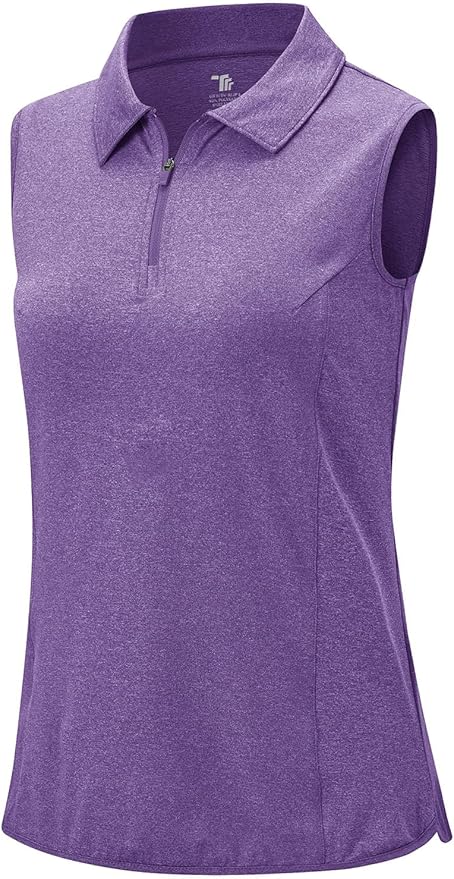 BGOWATU Women's Sleeveless Golf Polo Shirts 1/4 Zip Tennis Tank Tops with Collar UV Protection Quick Dry