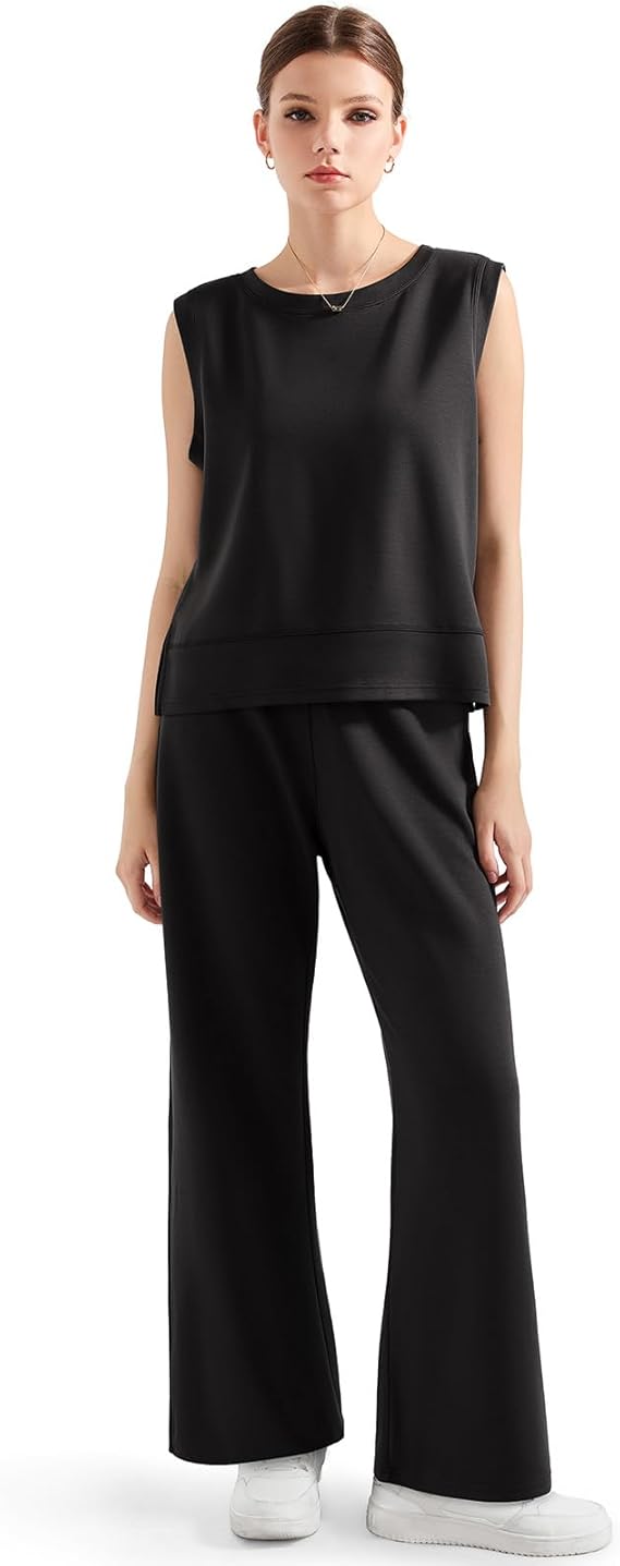 SUUKSESS Women 2 Piece Lounge Matching Sets Wide Leg Sweatpants Sleeveless Tops
