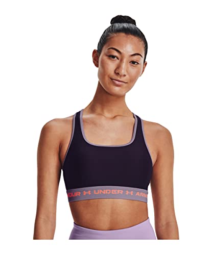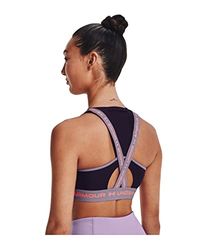 Under Armour Pocketed Women's Crossback Mid Imapct Sports Bra, Purple Switch/Club Purple/Electric Tangarine, XX-Large