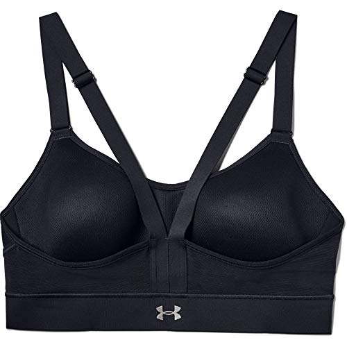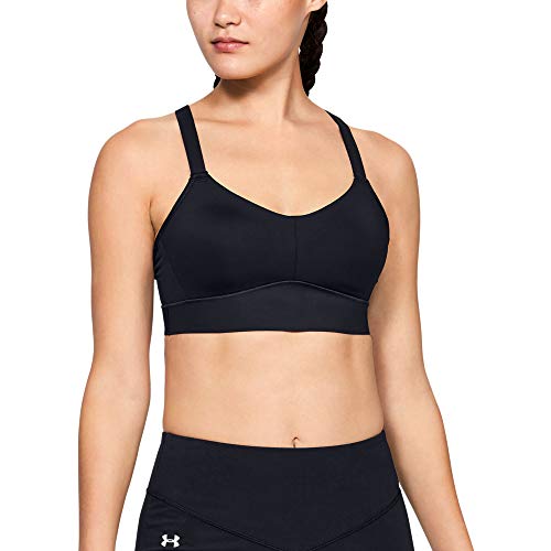 Under Armour Women's Breathelux Mid Bra, Black (001)/Pink Shiny Metallic, X-Large