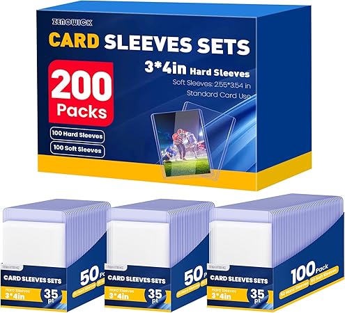 200 PCS Card Sleeves Toploads for Cards, 3" x 4" Baseball Card Protectors, Trading Card Sleeves Hard Plastic Fit for Baseball, Football Cards (100 Hard Sleeves + 100 Soft Sleeves)