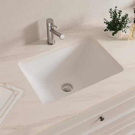 Undermount Bathroom Sink, 18" x 13" Rectangle Porcelain Finish Bathroom Sink Deep Basin with Overflow, White Ceramic Modern Lavatory Vanity Sinks Mounted Under the Counter