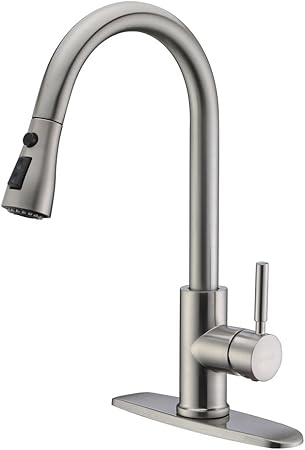 WEWE Single Handle High Arc Brushed Nickel Pull Out Kitchen Faucet, Single Level Stainless Steel Kitchen Sink Faucets with Pull Down Sprayer, Suitable for Laundry Rv Bar