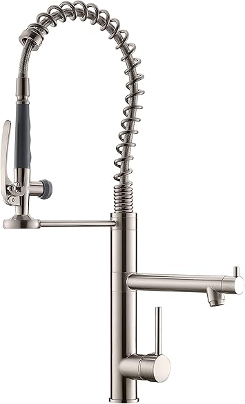 Commercial Kitchen Faucet with Pull Down Sprayer, AIMADI Modern Single Handle High Arch Pre-Rinse Spring Kitchen Sink Faucet, Brushed Nickel