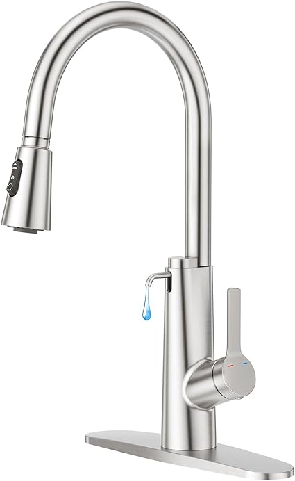 CREA 2 in 1 Kitchen Faucets with Soap Dispenser Built-in and Pull Down Sprayer, Single Handle Bar Sink Faucet 1 Hole Utility Laundry Commercial Faucet Brushed Nickel Stainless Steel