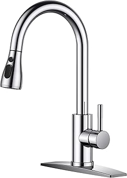 FORIOUS Kitchen Faucets with Pull Down Sprayer, Chrome, High Arc Single Handle Classic Stainless Steel Sink Faucet Pull Out for Farmhouse Camper Laundry Rv Bar