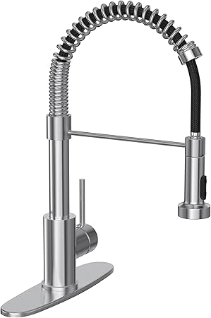 Kitchen Faucets with Pull Down Sprayer, Brushed Nickel Spring Commercial Kitchen Sink Faucet Solid Brass with 10 Inch Mounting Table 1 Hole Or 3 Hole CompatibleŠ—_