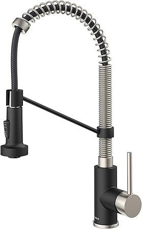 KRAUS Bolden Commercial Style 2-Function Single Handle Pull Down Kitchen Faucet in Stainless Steel/Matte Black, KPF-1610SSMB (Pack of 1)