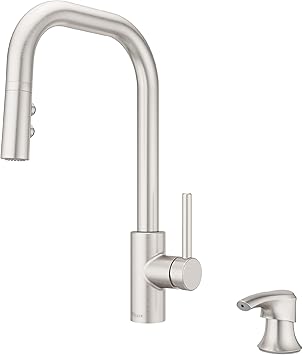 Pfister Zanna Kitchen Faucet with Pull Down Sprayer and Soap Dispenser, Single Handle, High Arc, Spot Defense Stainless Steel Finish, F5297ZNRGS