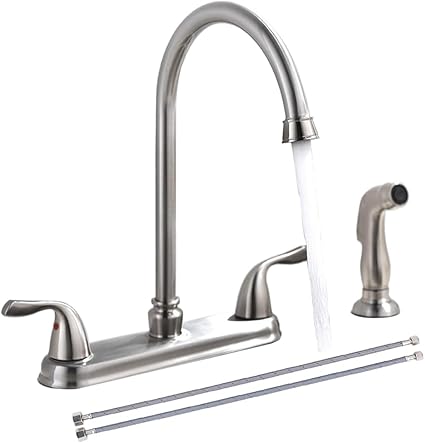 SHACO Kitchen Faucet with Side Sprayer, Stainless Steel 2 Handle Kitchen Faucet with Water Supply Line, Brushed Nickel High Arch 360 Swivel Kitchen Faucet for Sink 3 Hole 4 Hole