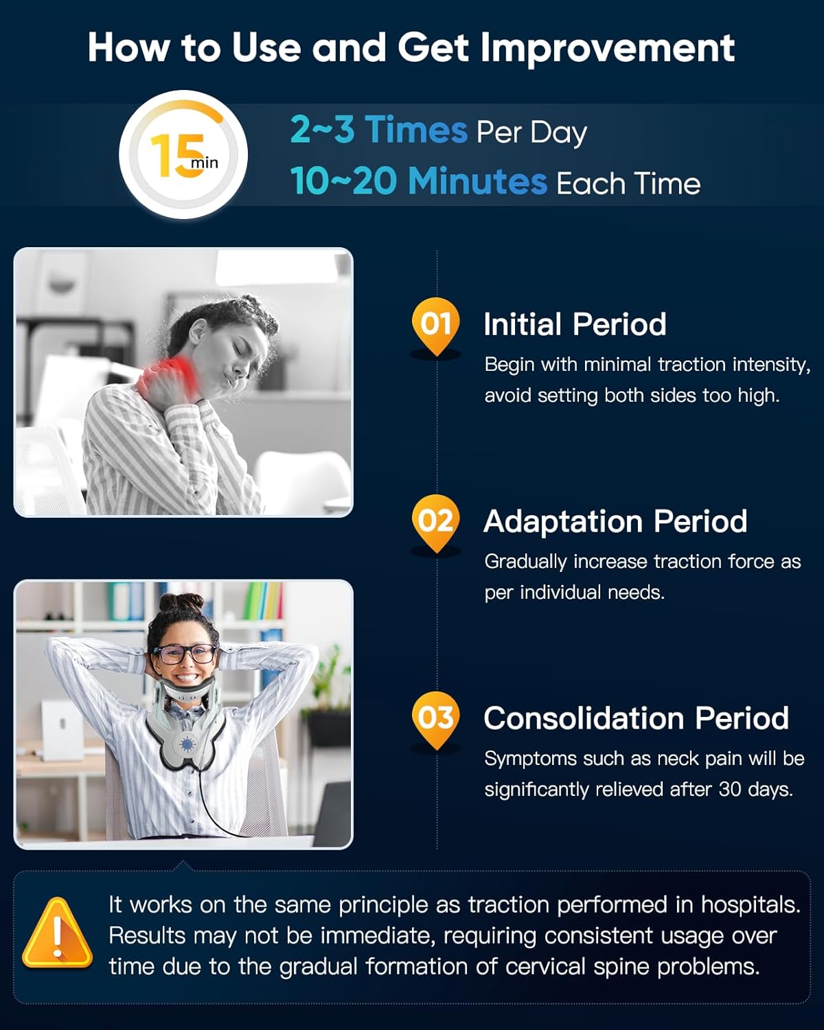 • 【Doctor Recommended Traction Device】Applicable to: 1) The doctor recommends traction and stretching of the cervical spine (Diagnosis of cervical spondylosis by MRI, X-ray, or CT). 2) Long-term cervical spine compression pain. 3) Numbness in the shoulders and arms. 4) Hear a sound or feel dizzy when rotating your cervical spine. 5) Traction the condyles of the cervical spine, not fix.