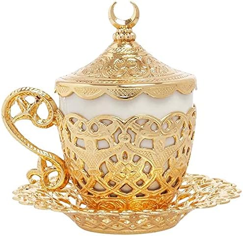 Alisveristime (1 Pc Turkish Coffee Cup - Traditional Design with Crescent Motif, Porcelain Cup and Saucer for Turkish, Greek, Arabic Coffee and Espresso (Gelincik) (Gold)