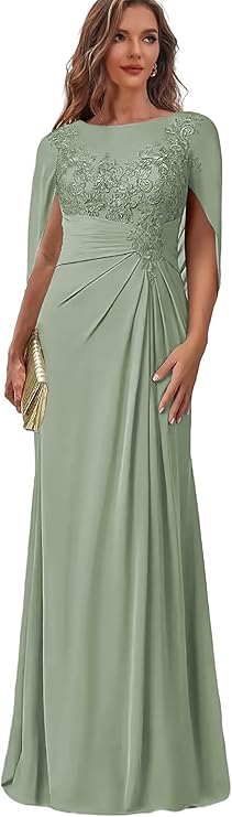 Chiffon Long Mother of The Bride Dresses for Wedding Lace Appliques Formal Dress with Cape Corset Evening Gown