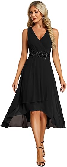 Ever-Pretty Women's Summer High Low Sun Dress Sleeveless V Neck Flowy Ruched Chiffon Formal Dress for Wedding Guest 41926
