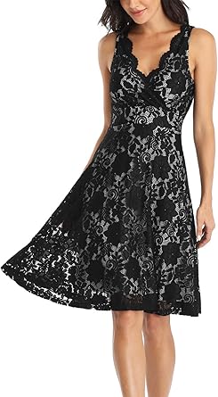 MISS MOLY Women's Floral Lace Overlay Fit and Flare Dress Sexy V-Neck Knee Length Elegant Party Wedding Dress