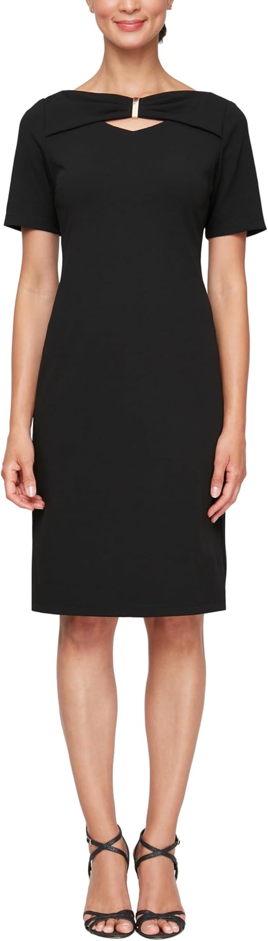 S.L. Fashions Women's Short Sheath Ruched Cutout Neck Detail, Wedding Guest, Formal Event Dress