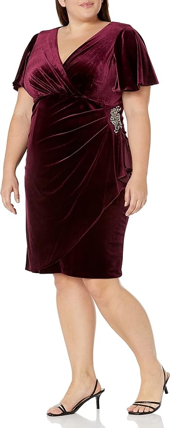 S.L. Fashions Women's Velvet Cocktail Sheath Dress, Perfect Holiday Party, Wedding Guest Gown (Plus Size)