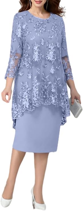 Sheath/Column Elegant Mother of The Bride Dress Jewel Neck Tea Length Wedding Guest Dress with Appliques 2024