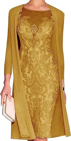 WEEOUR Elegant Mother of The Bride Dresses Midi Length 2 Piece with Sleeves Chiffon Lace Wedding Guest Groom Mother Gown