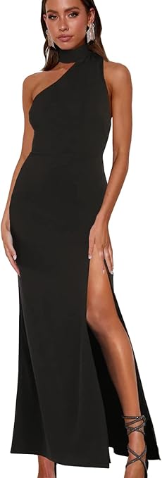 Zalalus Women's Halter Neck One Shoulder Wedding Guest Dress Summer Slit Asymmetrical Cutout Cocktail Party Maxi Dresses