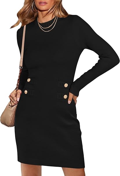 ANRABESS Women Long Sleeve Casual Buttons Knit Bodycon Short Sweater Dress 2024 Fall