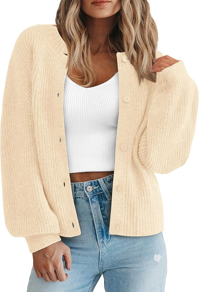 BTFBM Women's Chunky Knit Fall Cardigan 2024 Winter Long Sleeve Button Down Soft Loose Cropped Sweater Outerwear