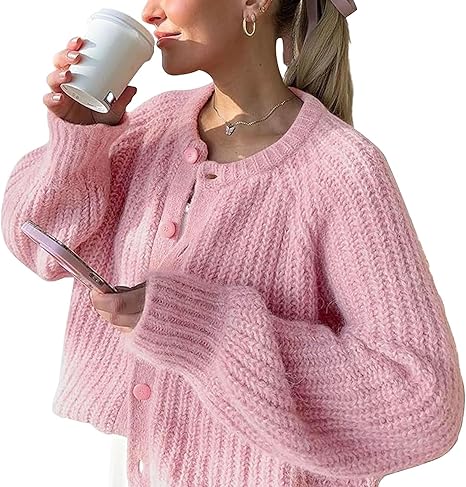 FindThy Women_Ñés Chunky Knit Cardigan Long Sleeve Button Down Crewneck Fall Sweater Coat