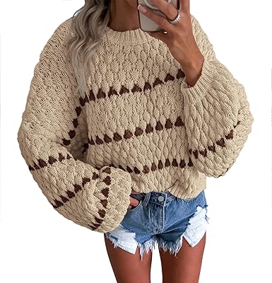 Okiwam Womens Fall Sweaters 2024 Long Sleeve Crew Neck Striped Color Block Pullover Loose Chunky Knitted Jumper Tops