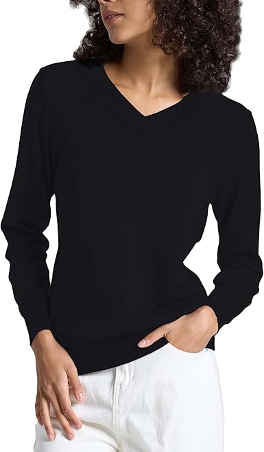 Women's Long-Sleeve Pullover Lightweight Soft V-Neck Casual Sweater Top