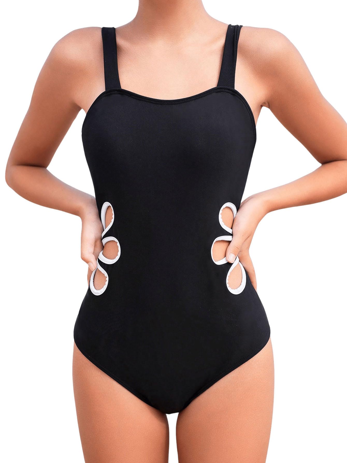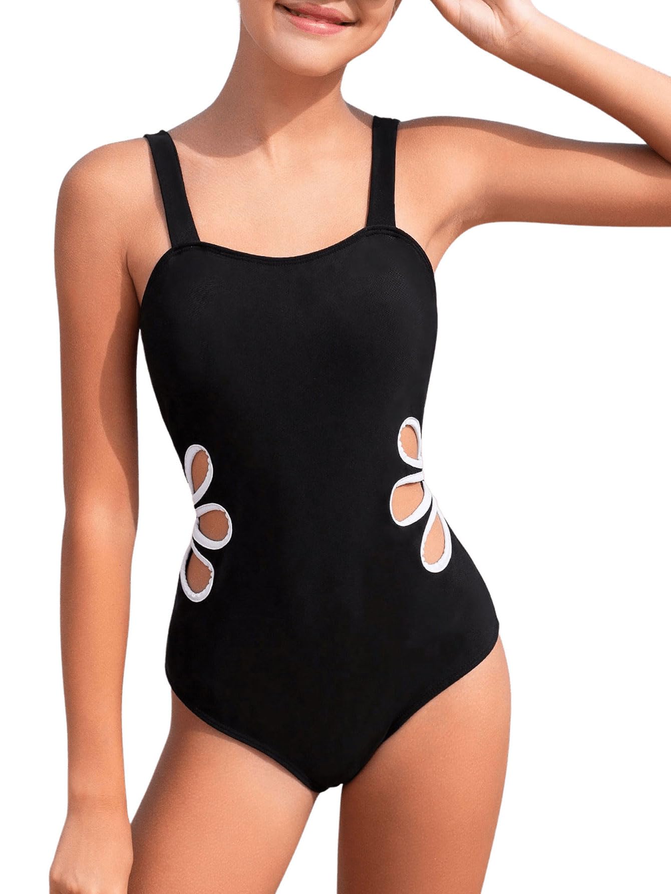 BEAUDRM Girl's Solid Cut Out Sleeveless One Piece Swimsuit Y2K Bathing Suits Swimwear Beachwear Black 13Y
