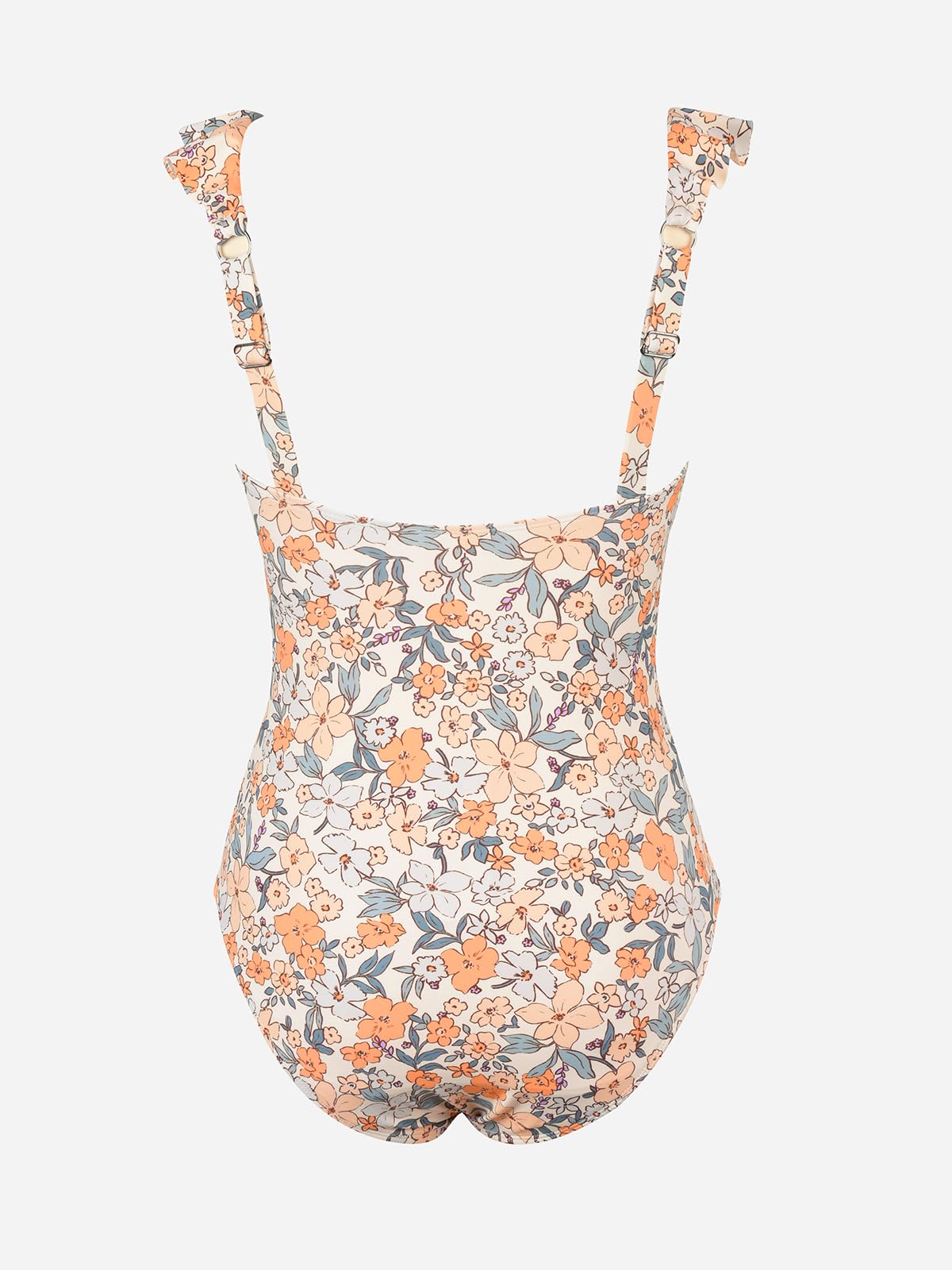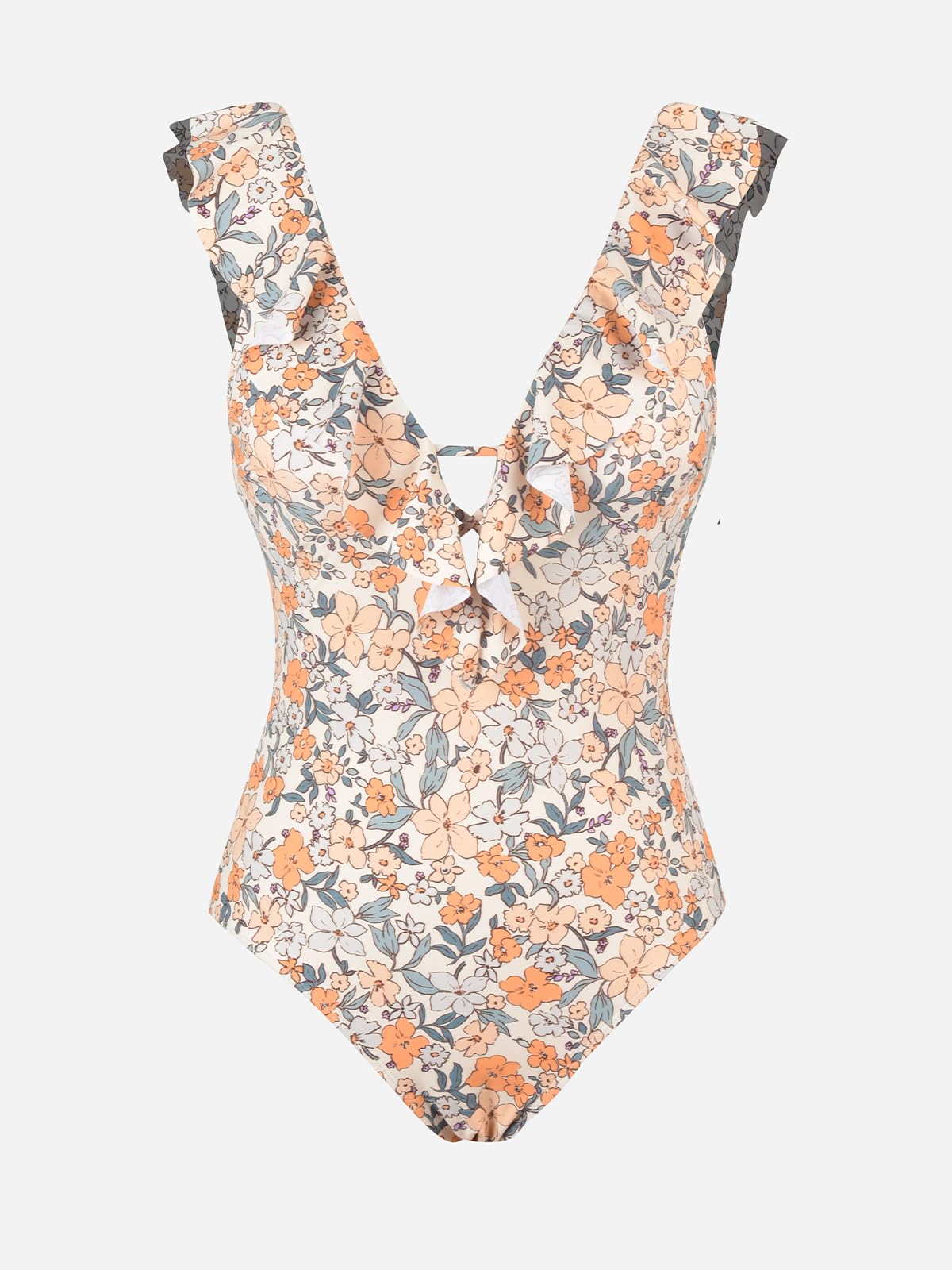 CUPSHE Women's One Piece Swimsuit Bathing Suit V Neck Ruffled Swimwear Adjustable Straps (XS-4XL) M Orange Floral